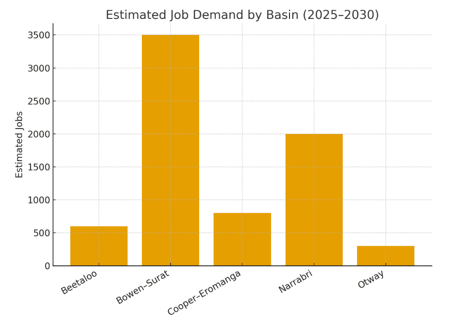Bowen–Surat Basin (QLD): Expansion through Arrow Energy’s Phase 2 and Senex Atlas projects will deliver hundreds of new wells by 2028 — increasing demand for drillers, field operators, pipeline welders, and safety officers.