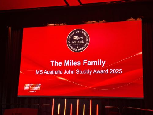 Receiving the John Studdy Award is no small milestone. It is the highest honour given by MS Australia — reserved for only the most significant contribution over many years.